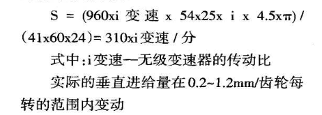 被磨削齒輪的垂直進(jìn)給系是借用球形盤式無(wú)極變速器獨(dú)立的傳動(dòng)來(lái)實(shí)現(xiàn)的,被磨削齒輪的進(jìn)給速度: